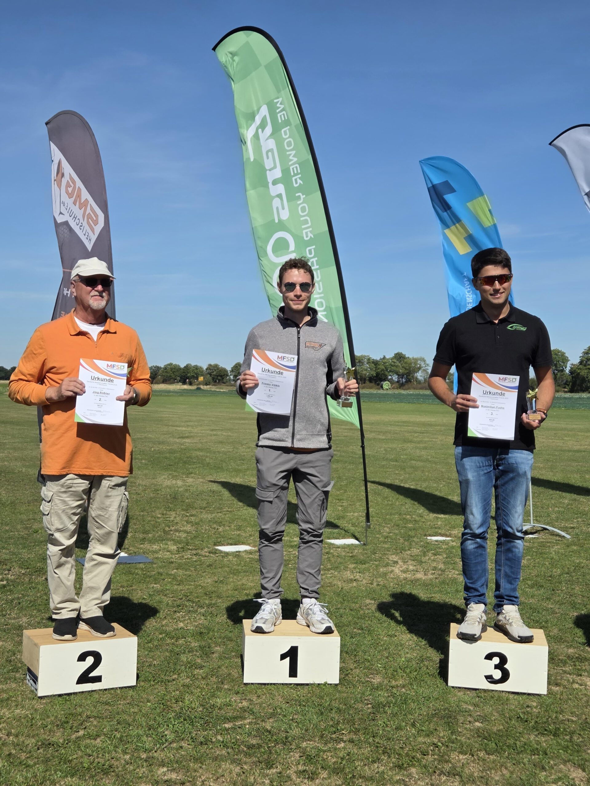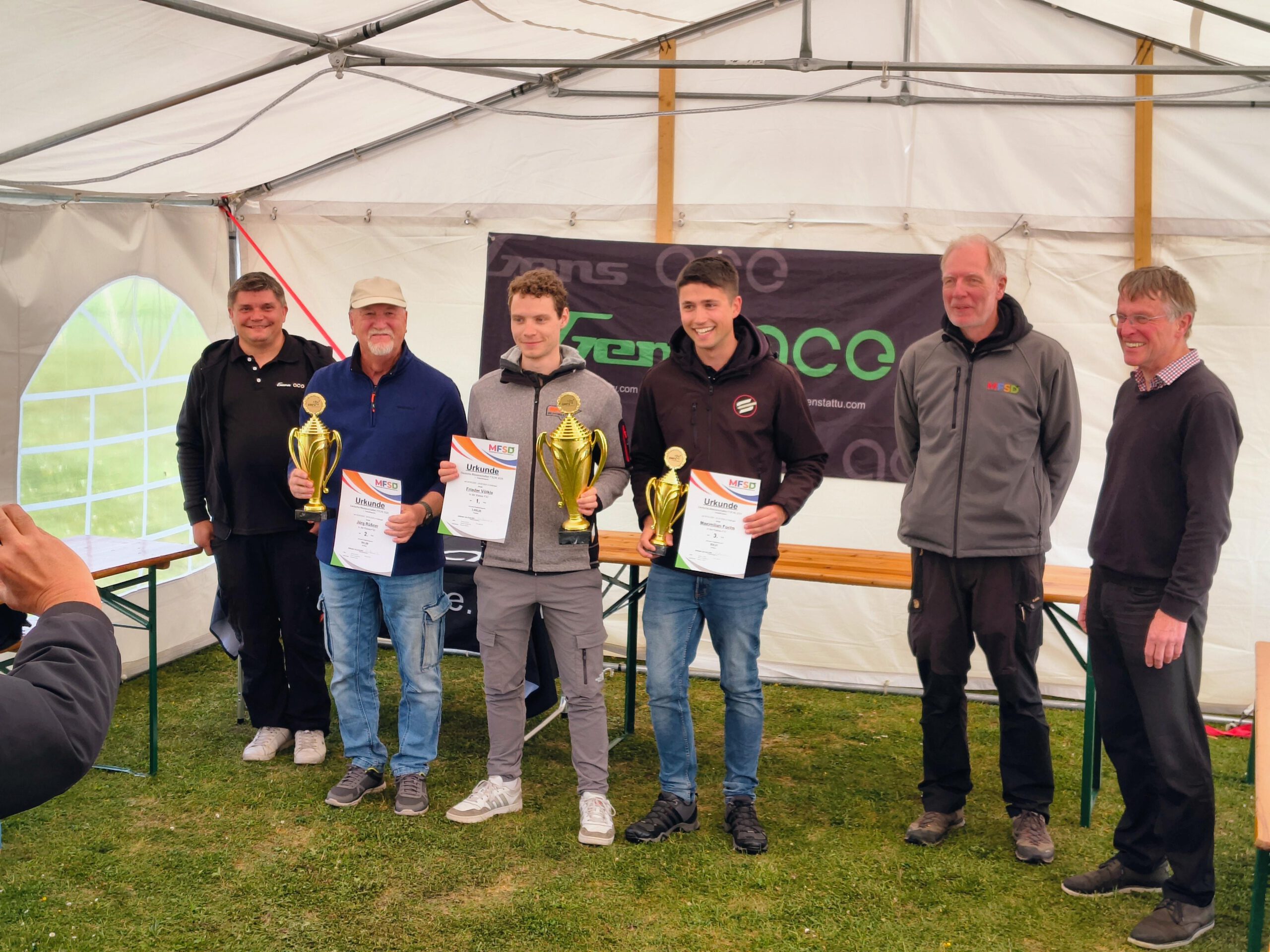 Immerhin sah man sich dann im Kleinenbroich wieder, wo ich mich, wie über den Sieg beim Teilwettbewerb, jetzt auch offiziell über den Deutschen Meister Titel freuen durfte. Das Podium teilte ich am Ende mit Jörg Rößner (2) und Maximilian Fuchs (3) – Glückwunsch!